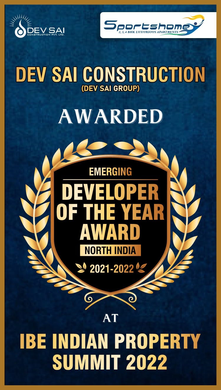 Emerging Developer of the Year 2021-2022 at IBE Indian Property Summit 2022.